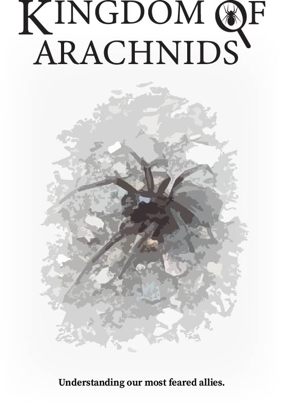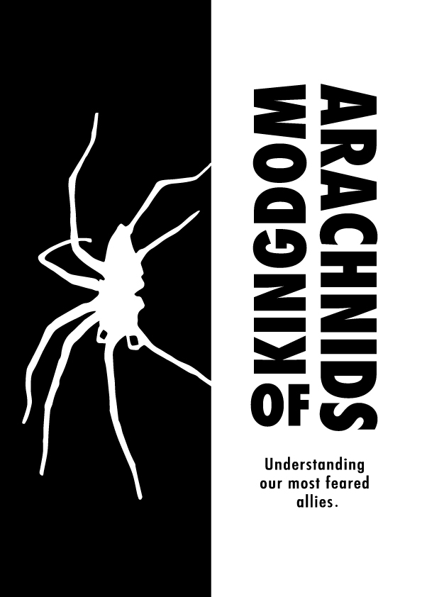 - Whilst it was the most practical and successful cover design, it had flaws, for example the masthead was very poorly designed and did not follow the importance hierarchy. I fixed it by scaling down the word “of” since its size emphasised its importance when in reality it was the least important word in the title. I have instead repositioned it below “kingdom” so that the reading order is not compromised, and scaled up the word “arachnids” since it is the most important word in the title.