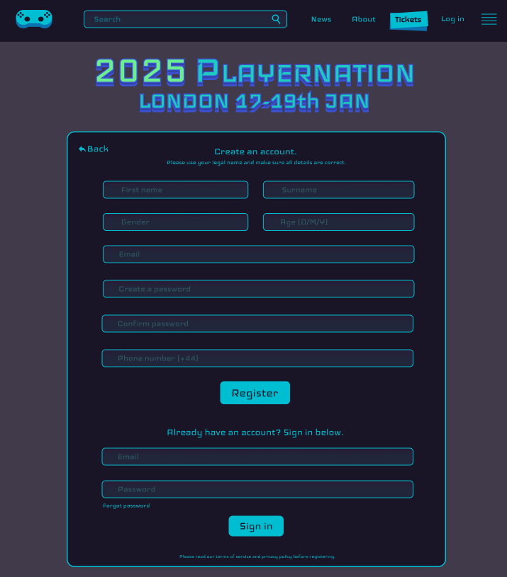 For registration I have decided to follow a similar colour scheme due to how easy it is to make the interactive UI stand out on a darker coloured background. All the important options are always available at the top in order to make it easier for the web visitor to navigate the website from every page, especially if they accidentally miss clicked. I have made the data collecting UI very strict and requiring a lot of details, as well as providing a data protection policy below in order to ease any concerns the users would have regarding the safety of their personal information. I have also decided to merge the sign in and log in into one page in order to make it easier to navigate, as well as adding a “forgot password” option for returning users who are unable to log in for any reason, making it more simple for them to return to using the website and recover their accounts with their data in them.