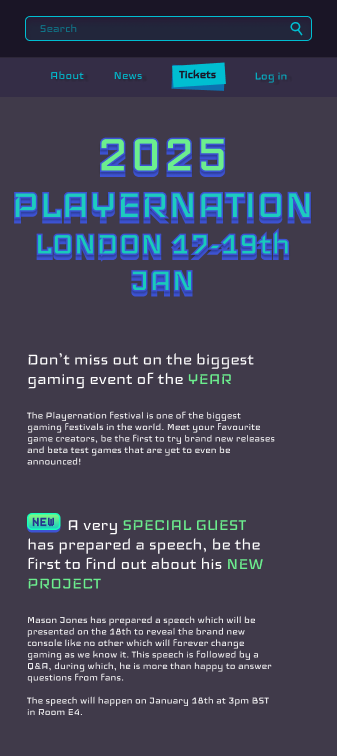In order to ensure that my website is always easily accessible, I have made a version compatible with mobile devices. This would also make it possible for the users to present the website at the festival as a proof of purchase of tickets if they were to accidentally delete or lose the email that provided them with the confirmation.