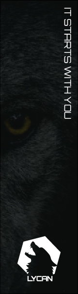 This banner shows 4 runners on a track, which gradually turns from straight lines to serrated claw marks. It represents becoming wild and free, from perfectly organised straight lines to wonky, disorientating and untamed ones. It is also meant to be interpreted as “all tracks lead to Lycan”, showing the brand’s confidence in their ability and marketing.